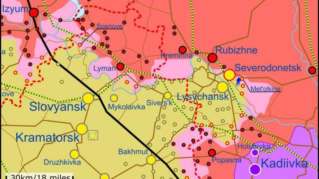 По мнению специалистов, украинские военнослужащие проводят контрнаступательные действия в районе Северодонецка, по сообщениям из источников, отбив часть города, а также вернув контроль в селе Метелкино. Данную информацию вчера также подтвердил советник главы ОП Алексей Арестович в эфире у Фейгина.