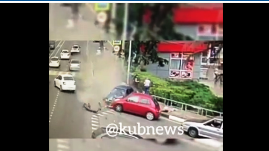 В российском курортном городе Сочи в Дагомысе в районе остановки «Чайная фабрика» водитель легкового автомобиля пересек двойную сплошную после чего вылетел на тротуар и врезался в группу пешеходов.