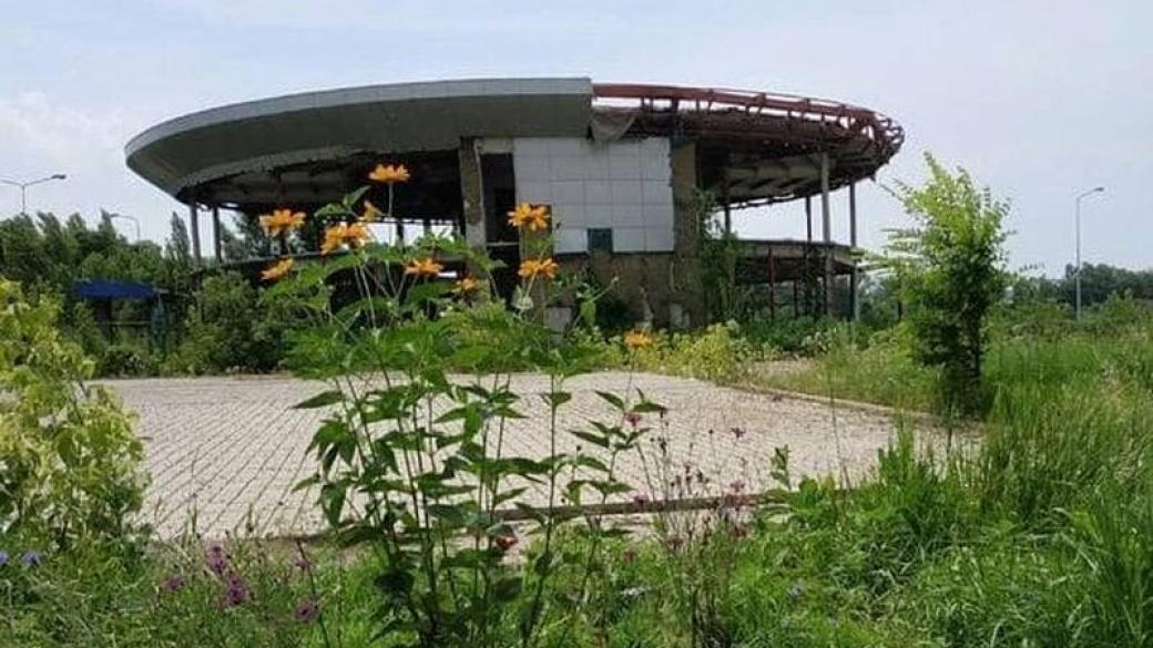 На фото видно, что здание разрушается, как и подъездные пути к нему. Автовокзал сильно пострадал за время, которое прошло с 2014 года. Вся территория заросла травой и кустами.