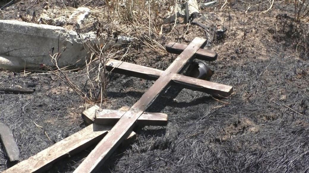 Во время очередного обстрела оккупанты попали и в местное кладбище, один из участков выгорел дотла. Разрушены надгробия, на многих можно увидеть следы от обломков снарядов, сожжены кресты.