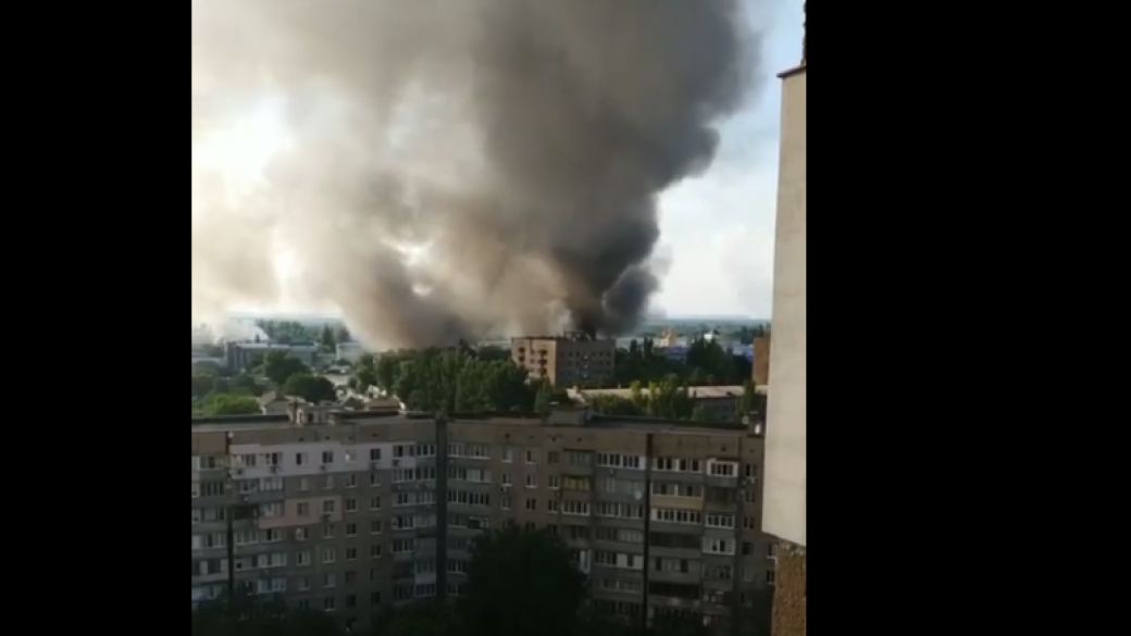 В Донецке после взрывов горят цистерны с топливом. Город затянут черным дымом