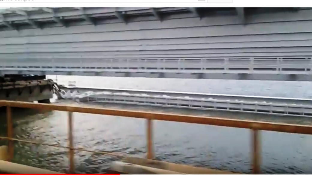 В сети опубликовано новое видео обрушения пролета строящейся железнодорожной части Крымского моста в аннексированном Крыму.