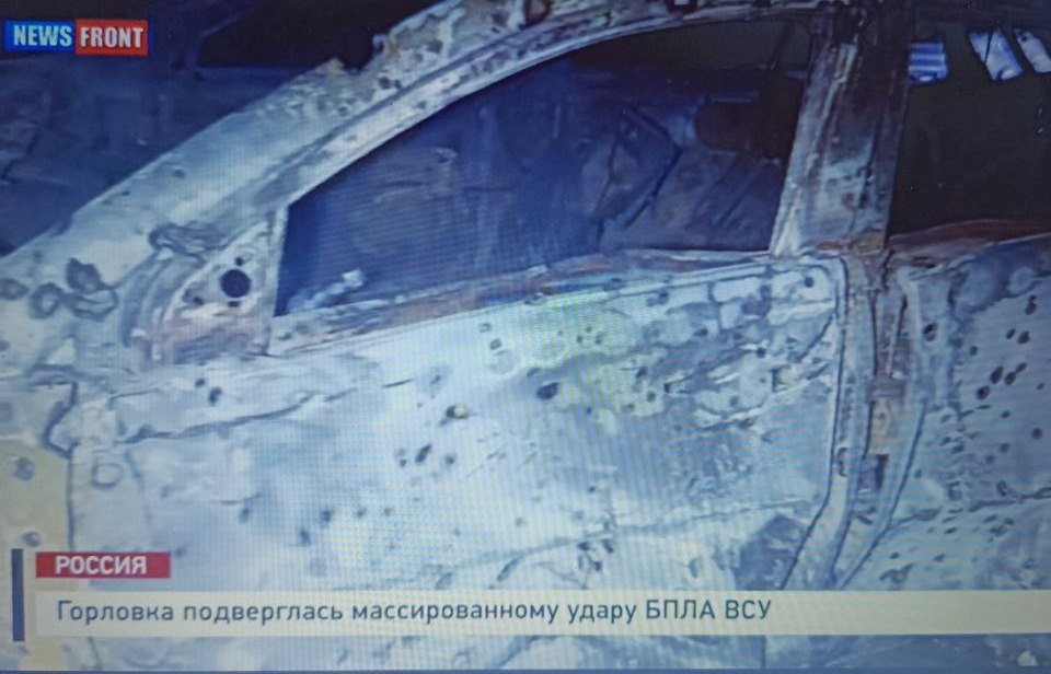 «Враг использовал тяжёлые беспилотники самолетного типа и наносил целенаправленные удары по домам мирных жителей и гражданским объектам. Ранено 2 местных жителя, они в больнице», - говорится в сюжете NEWS FRONT, показанном та телеканале «россия».