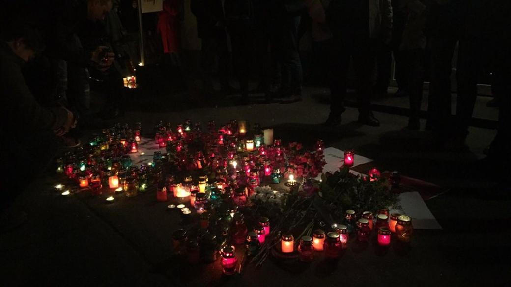 При входе в здание МВД участники акции сформировали из свечей фразу: «Ее убили».