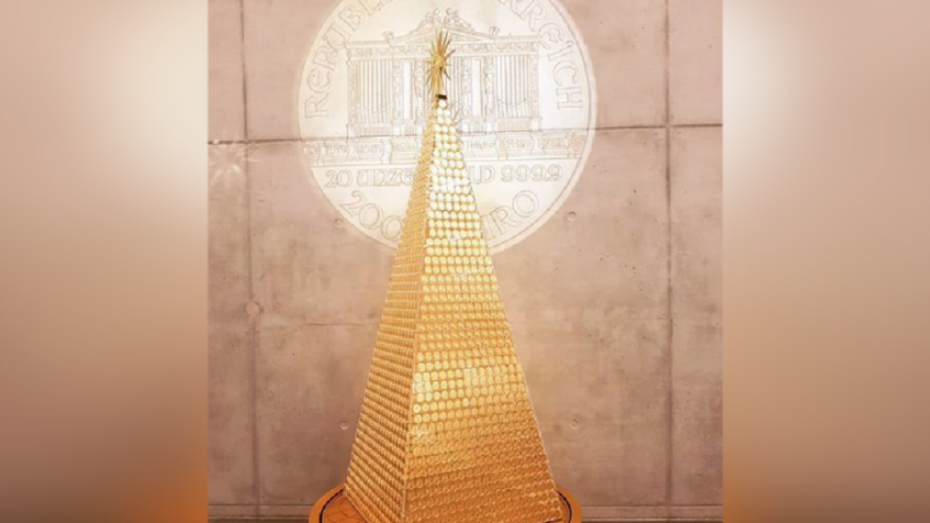 Золотая елка простоит в офисе компании по продажам драгоценных металлов Pro Aurum до 15 декабря.