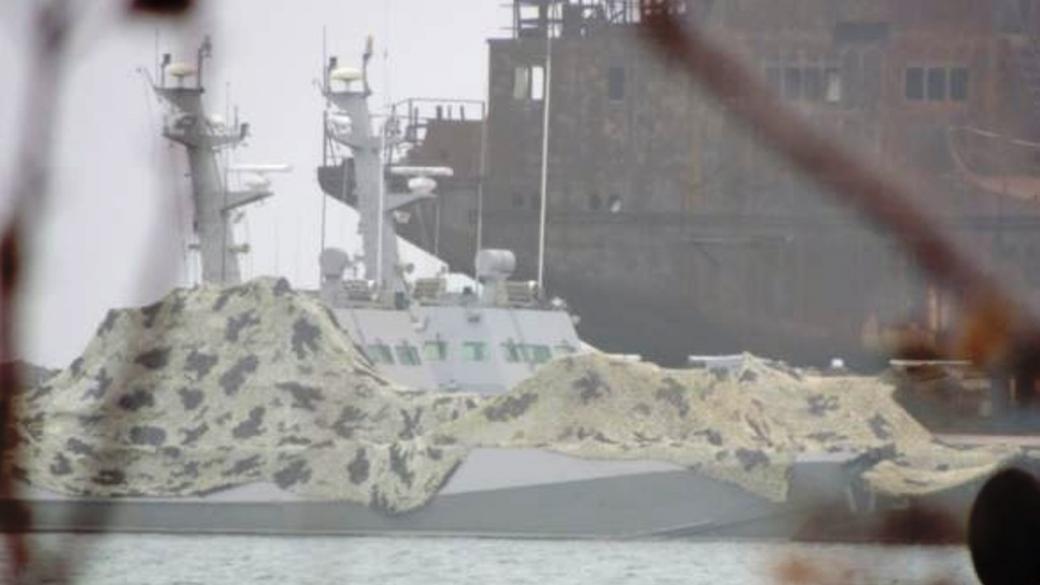 Представители издания смогли сфотографировать украинские военные корабли. На фото видна часть номера катера, который закрыт маскировочной сетью.