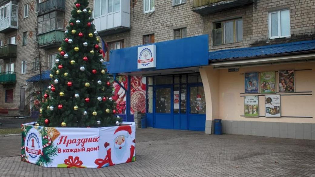 «Вчера торговая сеть „первый республиканский супермаркет“ установила свою главную Елку в Горловке», — говорится в сообщении блогера.