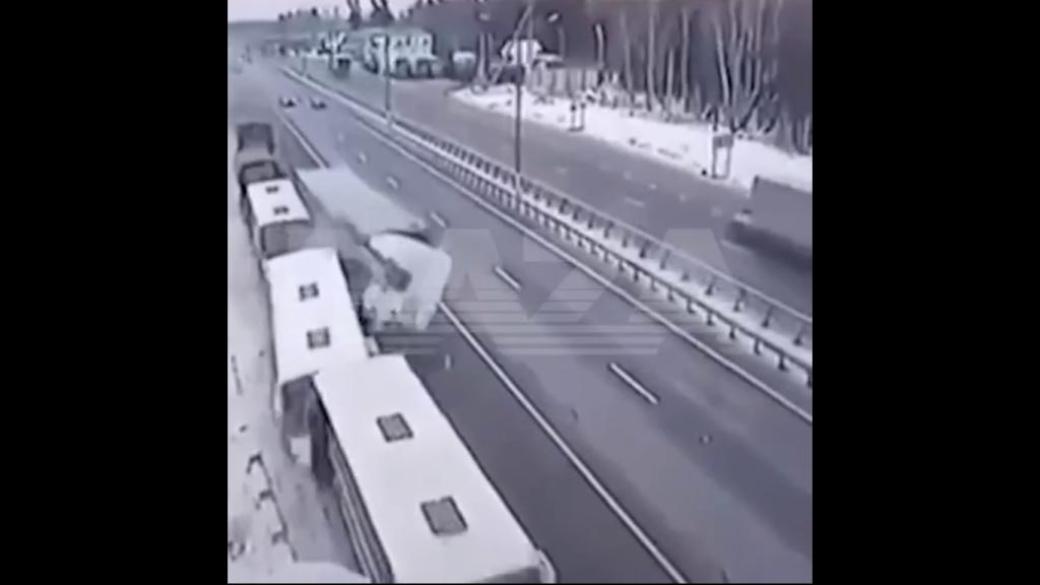Воронежская область. Бобровский район. Фура протаранила двигавшуюся в Украину колону росгвардии.
