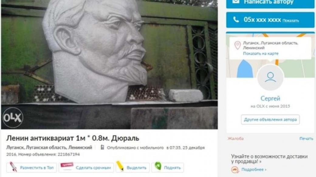 По наблюдениям, 25 декабря 2016 года на сайте луганчанин выставил на продажу дюралюминиевый профиль «великого вождя» Владимира Ленина. Что интересно, товар оценивается в украинских гривнах, а не в российских рублях, которые сейчас в обороте «ЛНР». При этом продавец надеется получить за Ленина 380 гривен.