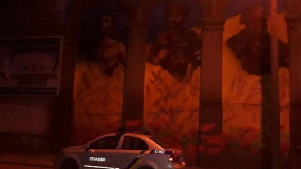 Прибыв на место происшествия, правоохранители установили, что неизвестные облили краской фрагменты настенного триптиха, открытого в честь 100-летия Украинской Революции.