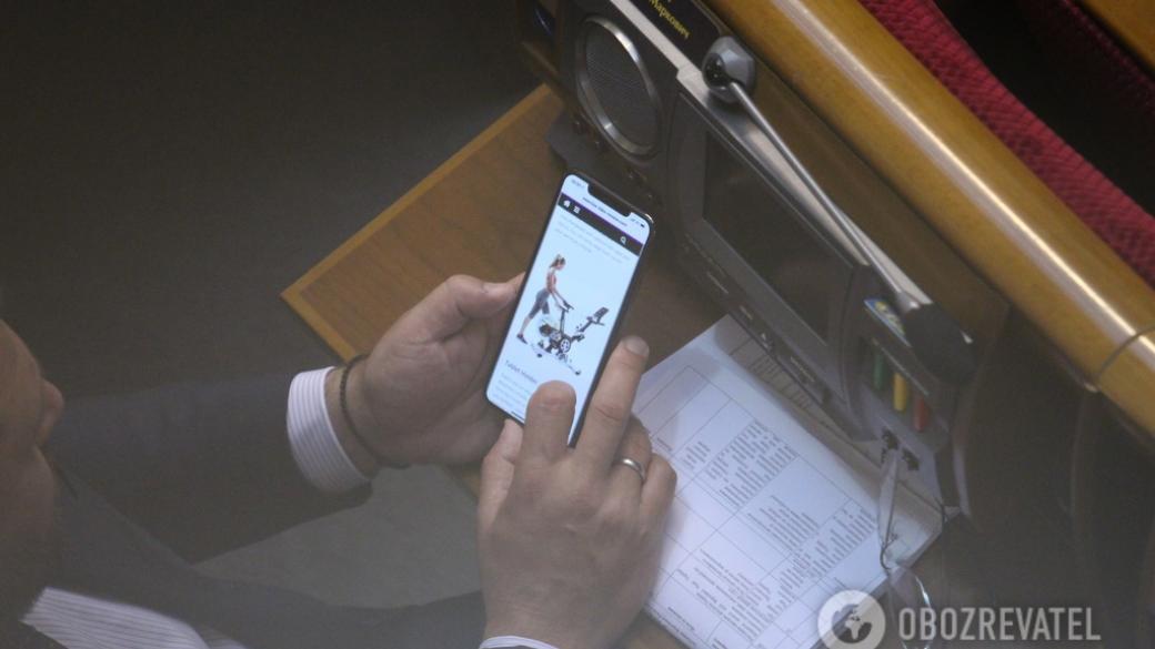 Народный депутат Украины от «Оппоблока» Михаил Добкин, находясь на рабочем месте в Верховной Раде, рассматривал в своем телефоне велотренажер с девушкой. Снимок с нардепом опубликовал в сети фотограф Ян Доброносов.