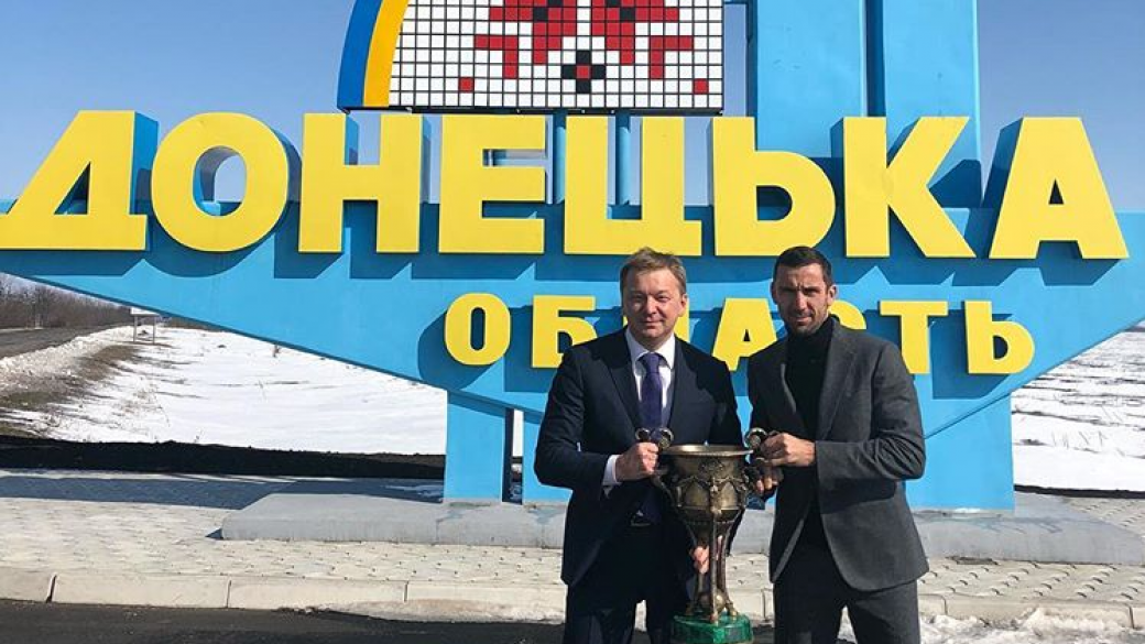 Гендиректор «Шахтера» Сергей Палкин и капитан команды Дарио Срна посетили Донецкую область, где сделали снимок с чемпионским кубком УПЛ.
