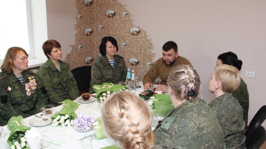 Так называемый «глава ДНР» Денис Пушилин 5 марта поздравил «женщин-военнослужащих» медроты «100-й отдельной мотострелковой бригады НВФ» с наступающим Международным женским днем. Об этом сообщают подконтрольные ОРДО СМИ.
