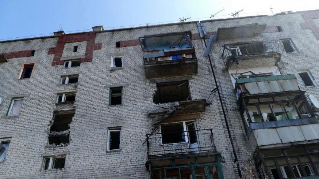 Здесь уже не осталось целых квартир и целых домов — кругом зияют дыры от снарядов и осколков. Тут нет давно ни электричества, ни газа, ни воды. Основная часть жителей покинули свои дома, оставшиеся люди прячутся от обстрелов в подвалах.