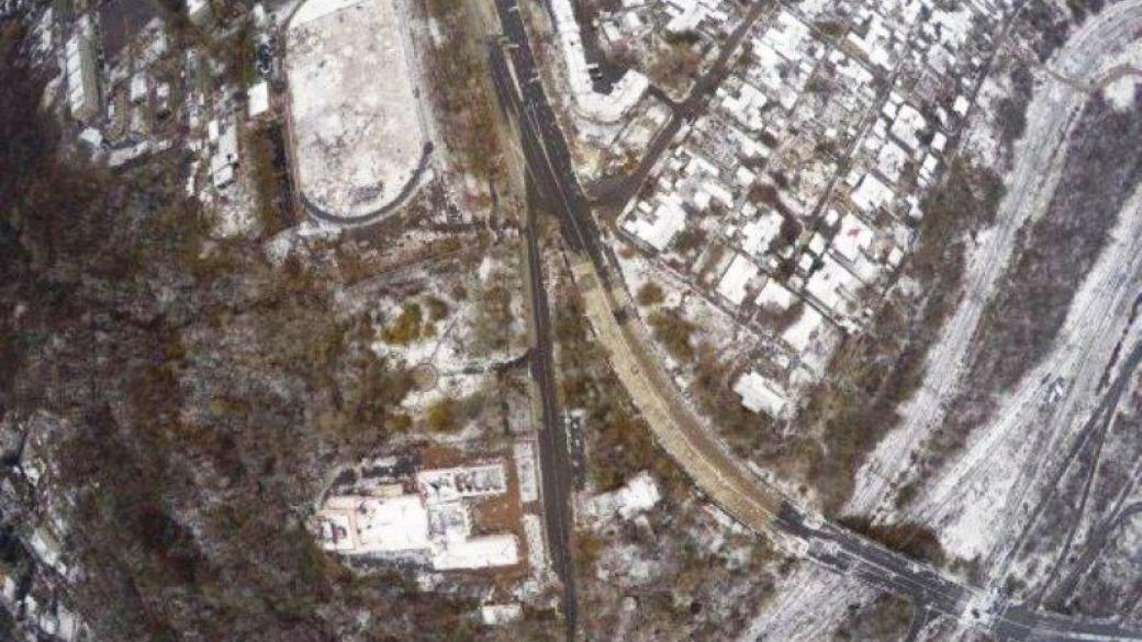 В сети опубликовали фото оккупированного Донецка с высоты птичьего полета на котром видны взорванный мост и уничтоженная Торгово-промышленная палата.