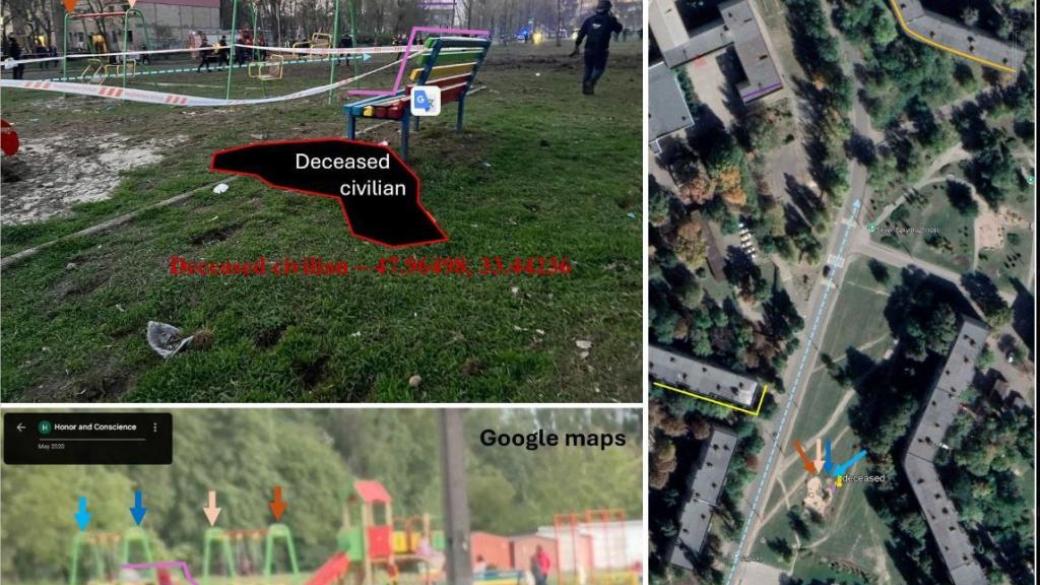 OSINT-аналитики опровергли заявление Кремля о «высокоточном ударе» по ресторану в Кривом Роге, где якобы были украинские офицеры. Так несколько OSINT-расследователей опубликовали посты, в которых по видео из Кривого Рога установили место падения ракеты, унесшей жизни 19 человек, в том числе 9 детей. Эксперты отмечают, что российская ракета упала в 20 м от детской площадки и не затронула ресторан RoseMarine, что опровергает заявление Минобороны рф о «высокоточном ударе» по ресторану.