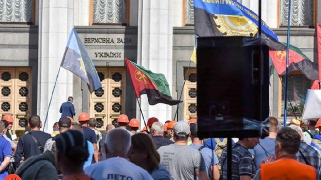 Сегодня на площади Конституции в Киеве на акцию протеста собралось около тысячи работников шахт.