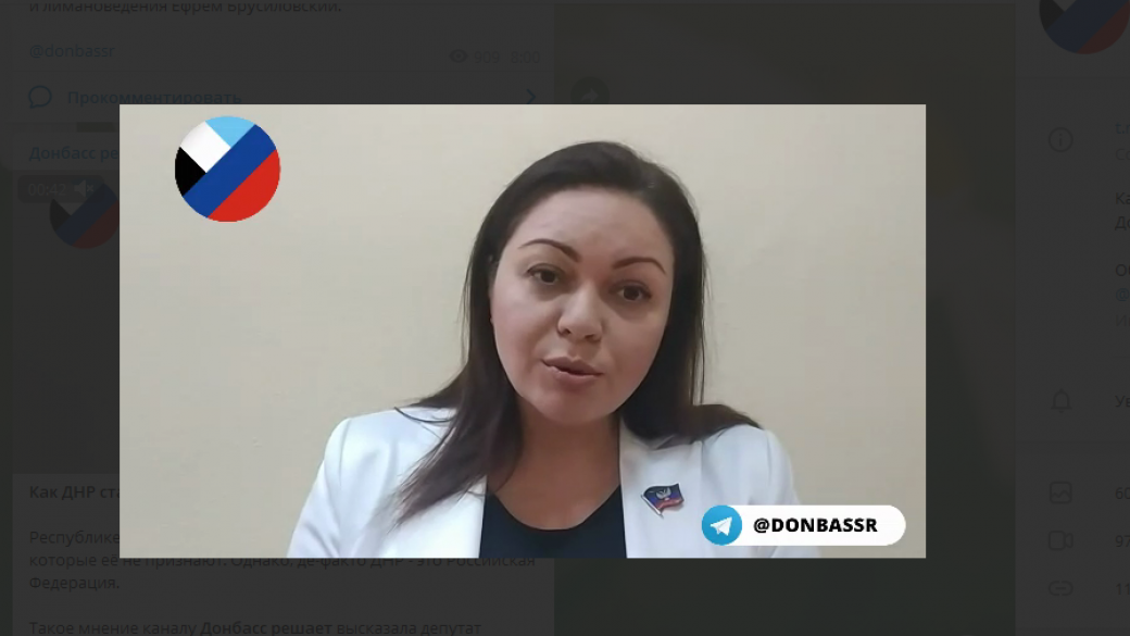Неподконтрольная Украине часть Донецка де-факто якобы Российская Федерация. Такое заявление сделала так называемый «депутат народного совета ДНР» Елена Шишкина.