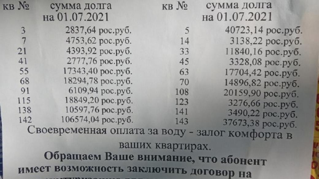 В неподконтрольном Украине Донецке представители местных коммунальных служб начали вывешить так называемые «позорные» списки жильцов многоквартирных домов, которые не платят за воду. Об этом сообщает Телеграмм-канал «Донбасский кейс».