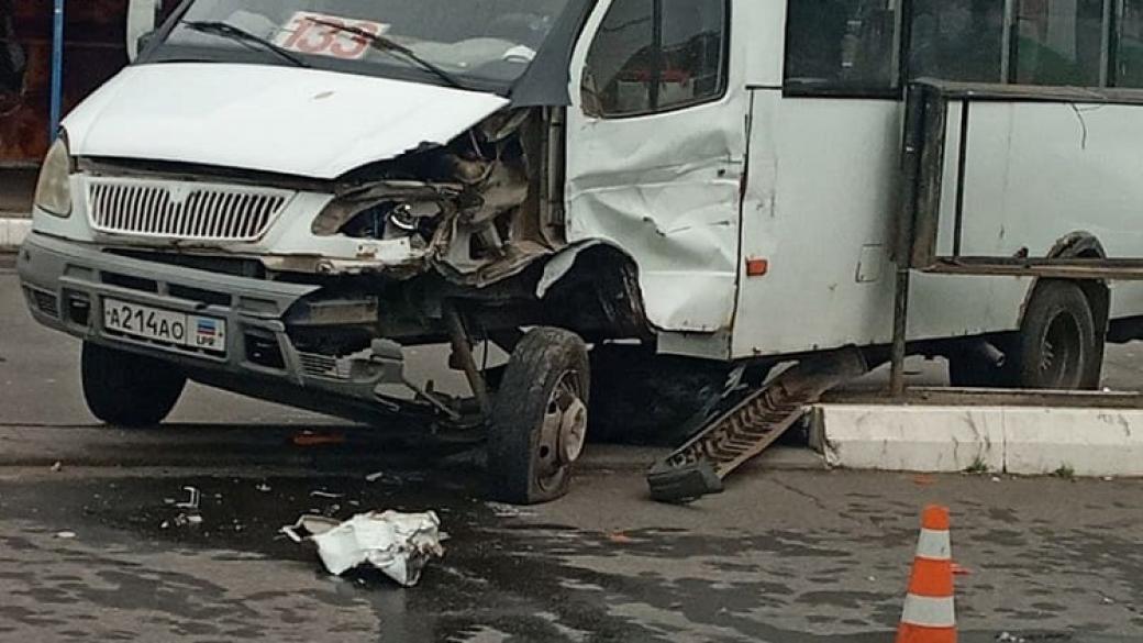 В воскресенье, 4 июля, в оккупированном Луганске столкнулись маршрутка и старая «Волга».