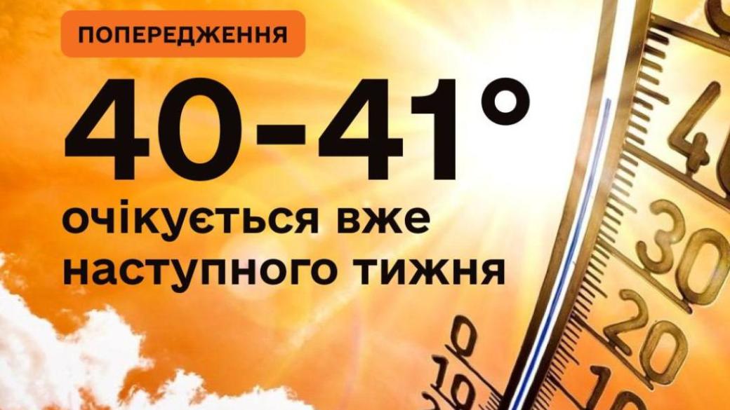 В ГСЧС уточнили 40-41° – близко к абсолютным максимумам температуры, зафиксированным в Украине за всю историю наблюдений. Погодные условия могут оказывать негативное влияние на самочувствие людей! Будьте осторожны, по возможности не выходите на улицу и пейте побольше водички