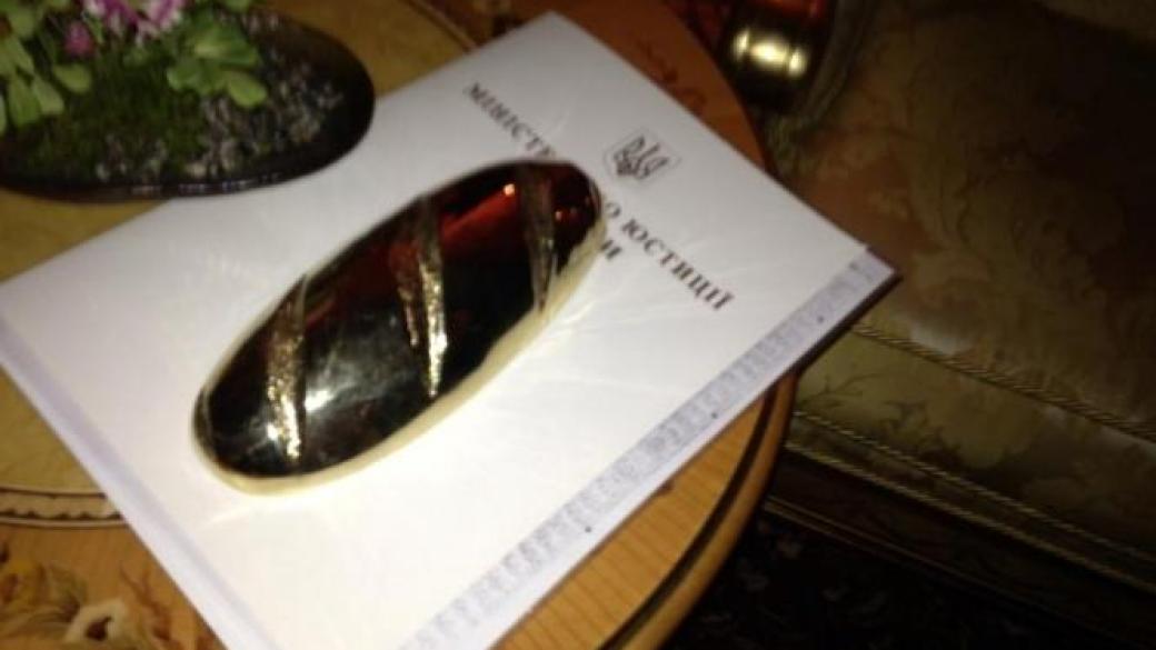 Двухкилограммовый золотой «батон», подаренный экс-президенту Виктору Януковичу и заживший после его бегства собственной жизнью (украден, найден, утерян.) подарил Януковичу бизнесмен, экс-регионал Владимир Мисик — владелец хлебной сети «Кулиничи».