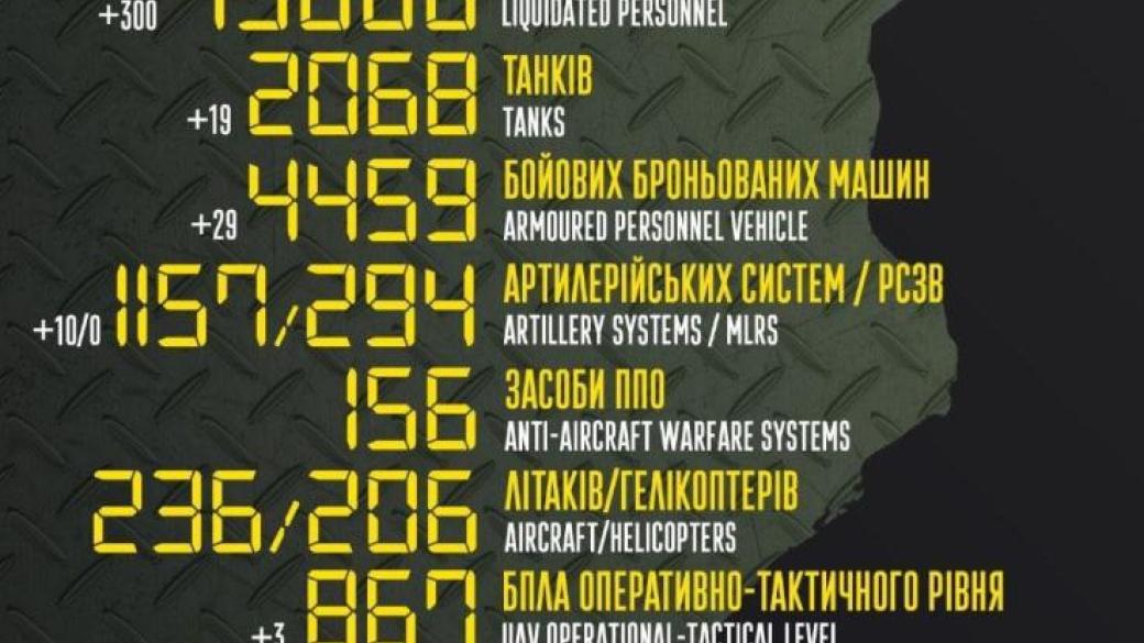 - личного состава - около 49 800 (+300) человек ликвидировано,