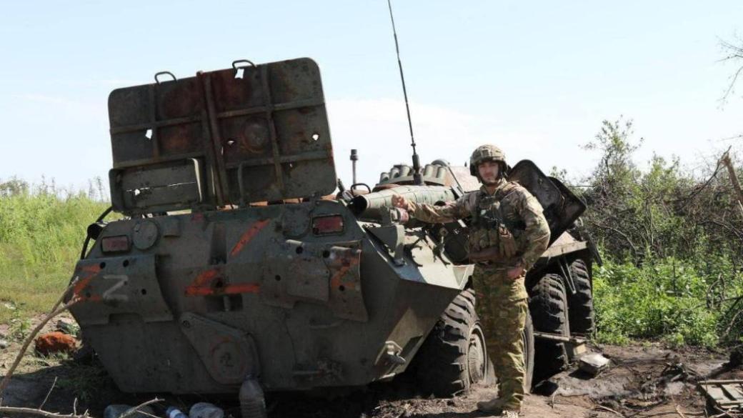 По его словам, бойцы ВСУ метр за метром очищают украинскую землю от захватчиков. Он показал на фото брошенную военную технику оккупантов, их одежду и паек.