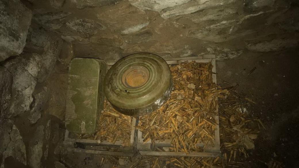 Второй тайник был обнаружен в заброшенном доме в селе Дача Бахмутского района Донецкой области, где ранее располагалась группировка так называемой «народной милиции ДНР». В схроне нашли противотанковую мину, два снаряда к пушке и около 4000 патронов различного калибра.