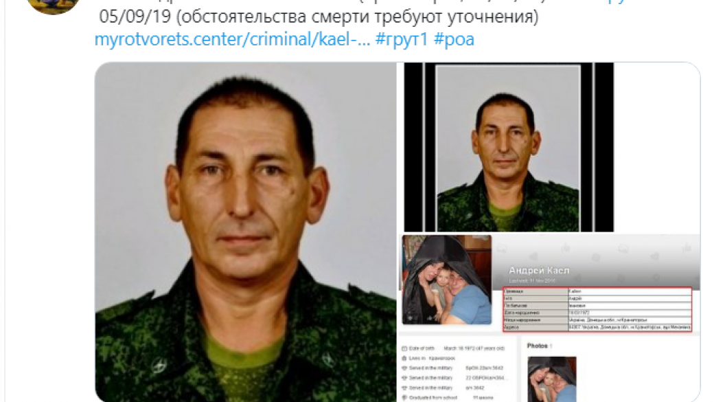 5 октября в ОРДО по неизвестной причине скончался член НВФ Андрей Каел, известный по позывному «Хасан». Об этом сообщает в Twitter пользователь Necro Mancer.