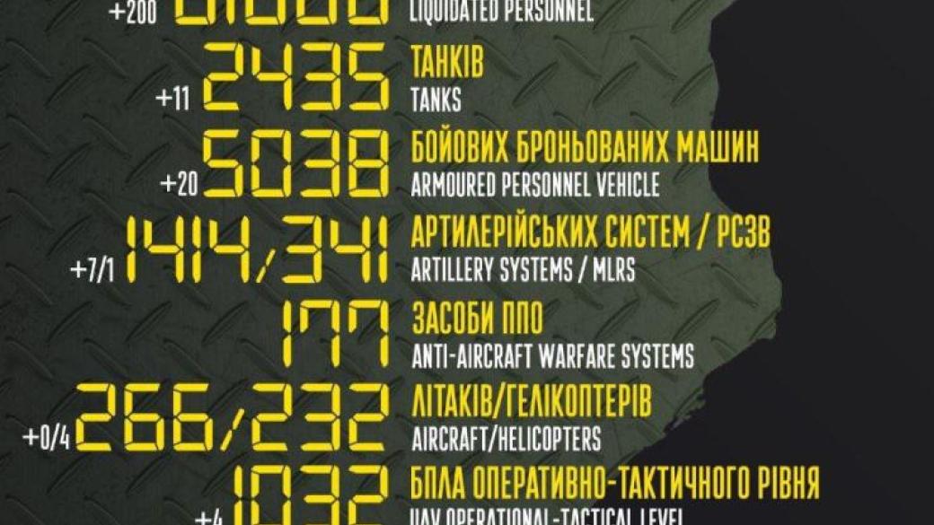 - личного состава - около 61000 (+200) человек ликвидировано;
