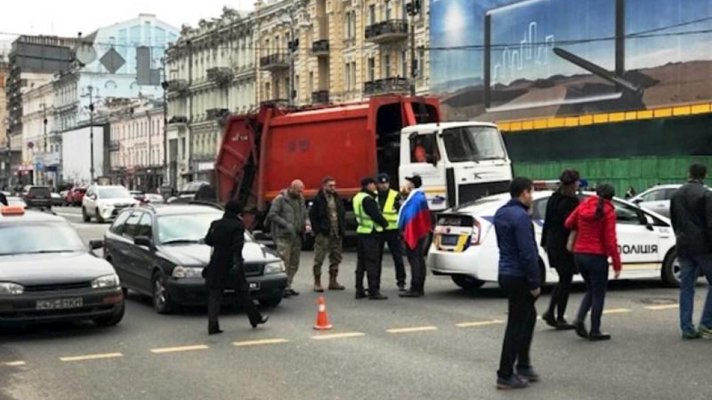 Сегодня днем гражданин Украины, обернувшись во флаг России, гулял по центральным улицам Киева.