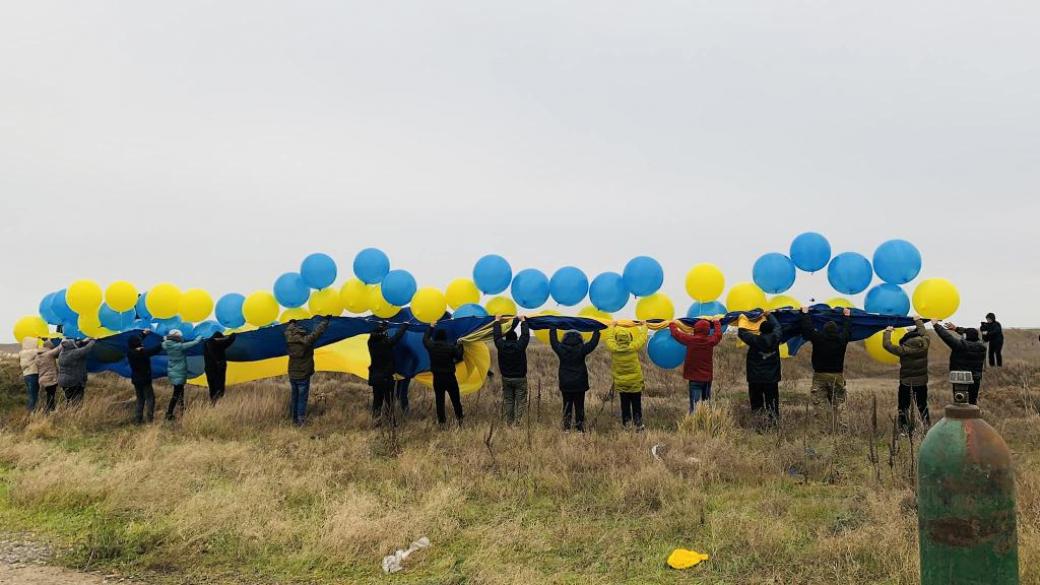 В акции принимали участие волонтеры из Запорожской и Херсонской области, а также Киева и Краматорска. Для Крыма изготовили украинский флаг размером 20 на 6 метров, к которому привязали воздушные шары Флаг был отправлен с КПВВ «Чонгар», где проходит административная граница между Крымом и Херсонской областью.