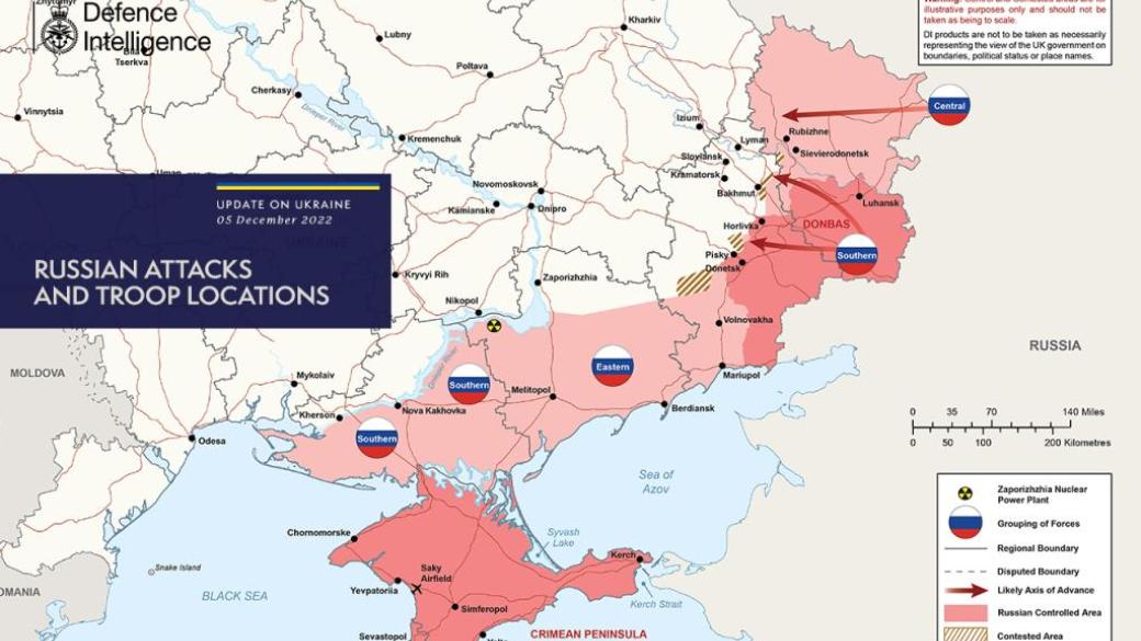 Карта боевых действий в Украине на 1 декабря от британской разведки: под Бахмутом войска РФ пытаются окружить ВСУ