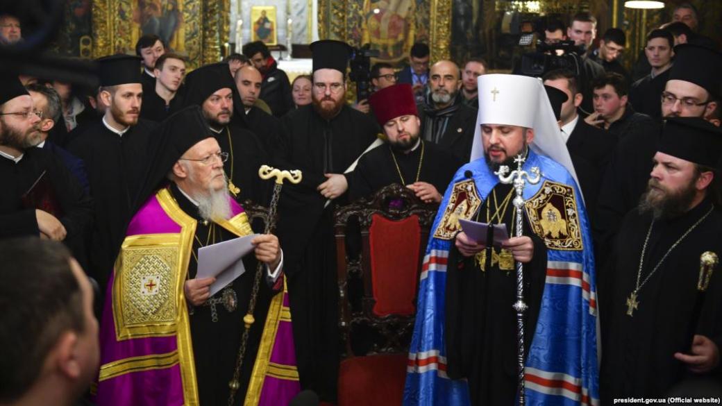 Рождественское богослужение совместно отправляют Вселенский Патриарх Варфоломей и предстоятель Православной церкви Украины Епифаний, избранный во время объединительного собора украинских православных церквей.
