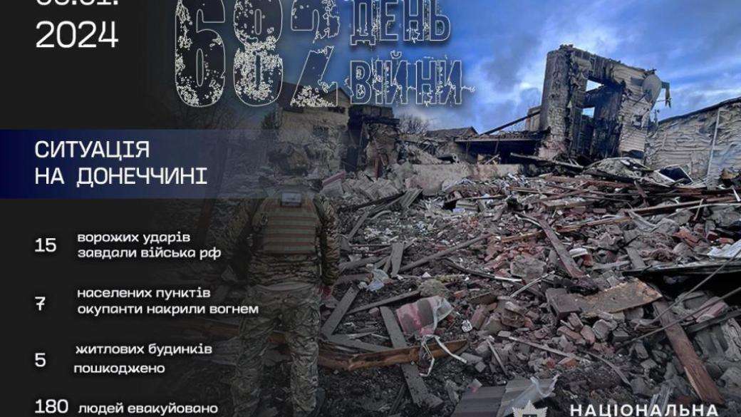 По данным полиции, атакам подверглись Авдеевка, Красногоровка, Покровск, Украинск, Очеретино, Островское, Соловьево. Повреждены 29 объектов, среди которых 5 жилых домов, школа, предприятие, хозяйственная постройка, гаражи, авто.