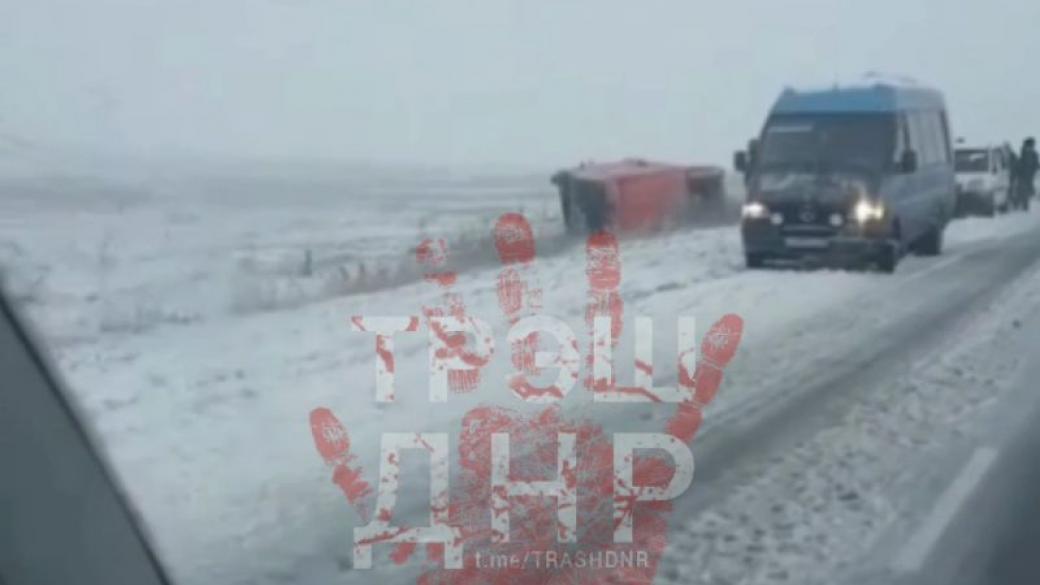 Он рассказал, что трасса Новоазовск-Донецк находится «в адском состоянии» — гололед, 10 см грязного снега, чистится для галочки «петушками», что малоэффективно.