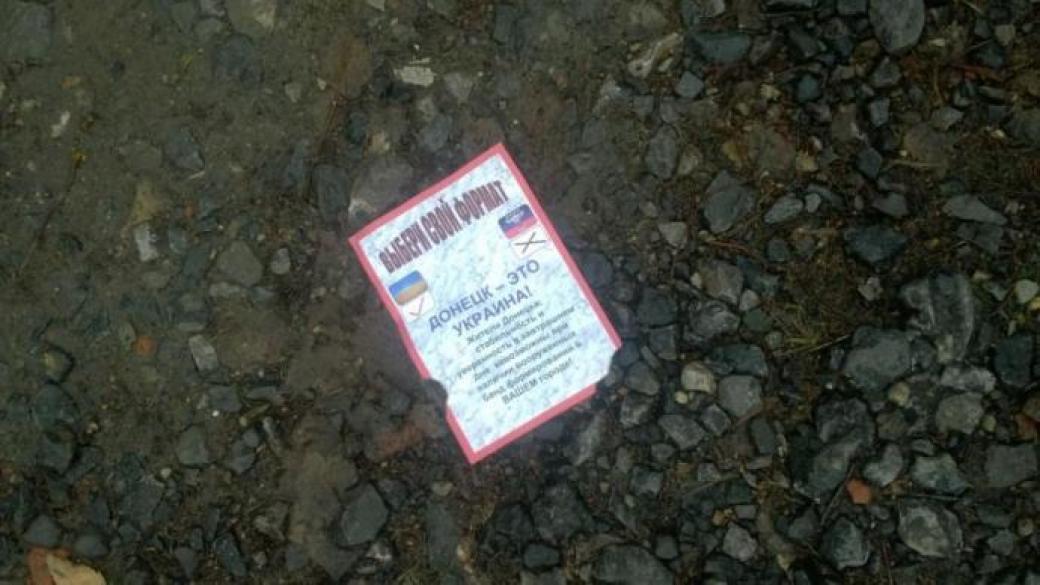 По информации, украинские патриоты разбросали листовки в районе шахты «Лидиевка» и в Петровском районе. Местный житель показал фото, которые он нашел на улице Летчиков в Петровском районе города.