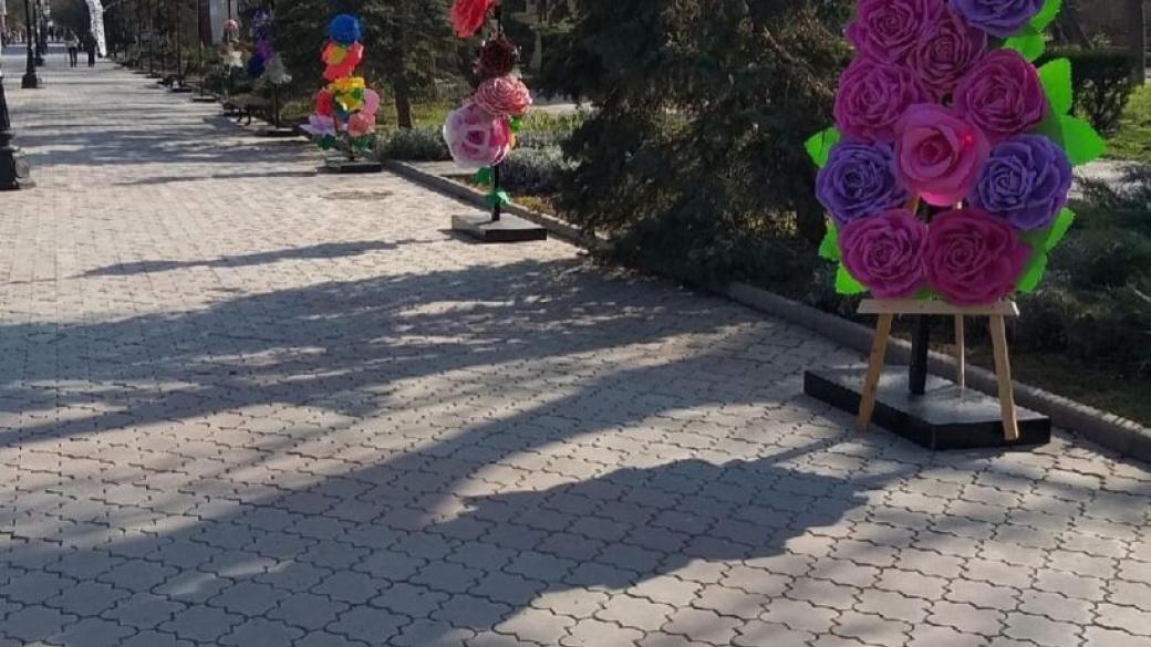 По сообщению издания АРК, в Евпатории незаконные «власти» украисли улицу Дувановскую бумажными цветами, выполненные школьниками. Причем, нигде не было отмечено, что это труд детей.