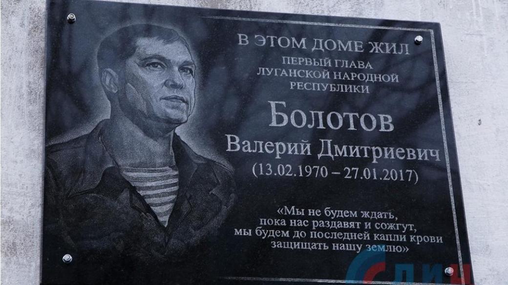 В оккупированном боевиками «ЛНР» Луганске «общественники» открыли мемориальную доску в память об экс-главаре «ЛНР» Валерии Болотове, умершем в январе нынешнего года.