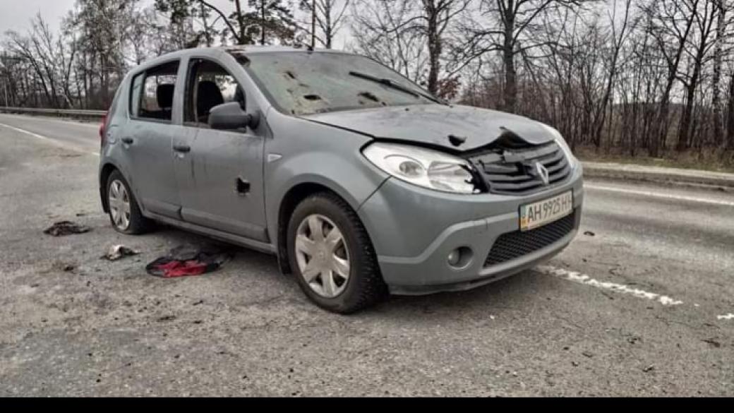 Автомобиль с донецкими номерами АН, который стоит на въезде в Бучу со стороны Ворзеля, был расстрелян «в спину» вероятно из крупнокалиберного пулемета или даже из пушки БТР. Об этом в Фейсбук написали один из очевидцев.