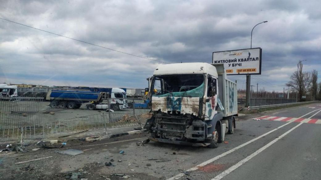 Он показал остатки гражданских автомобилей на дороге, отметив что еще несколько дней назад на дороге лежали тела убитых мирных жителей. Сейчас же об ужасах «русского мира» напоминают расстрелянные автомобили и символика российских агрессоров — буква «V».