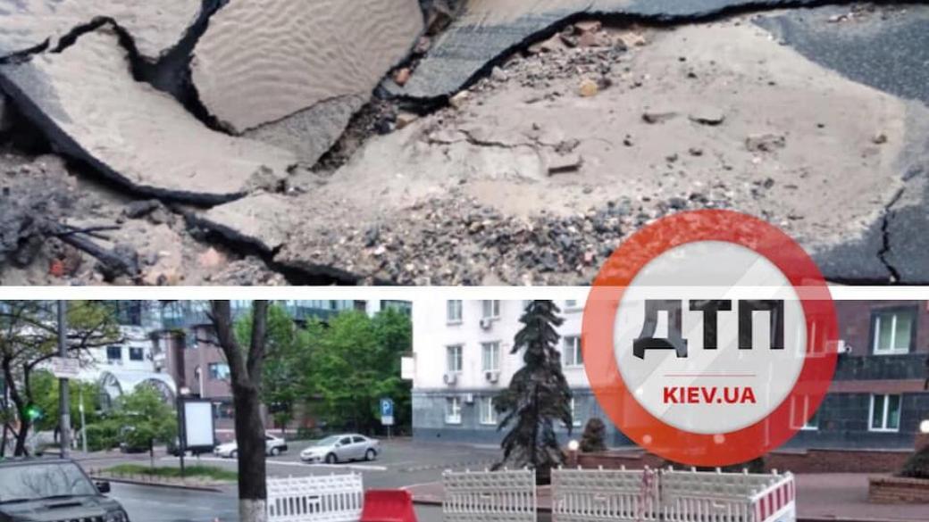 В Киеве по адресу улица Кловский спуск, 14/24 из-за обильных осадков произошел провал асфальта. Об этом сообщает сообщество dtp.kiev.ua в социальных сетях.