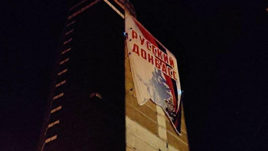 Жители неподконтрольного Украине Донецка негативно отнеслись к размещенному на одной из гостиниц города баннера с надписью «Русский Донбасс». Об этом они пишут в соцсетях.