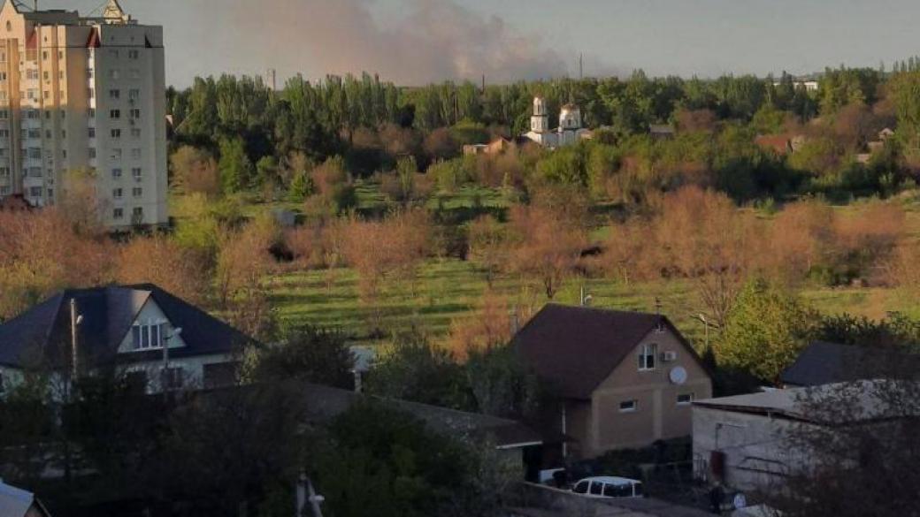 В районе Мотеля в Донецке после обстрела поднимается большой столб дыма