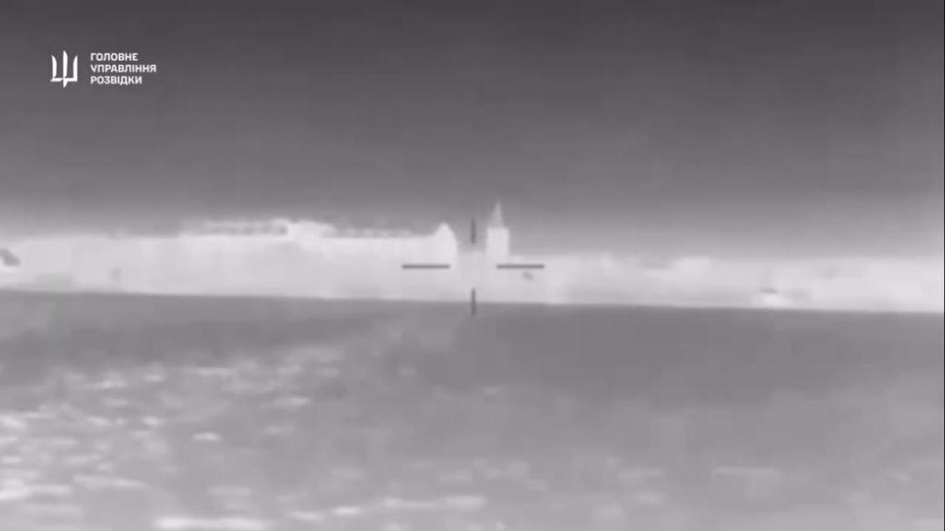 Опубликовано видео удара морского дрона ГУР по военному катеру россиян в оккупированном Крыму этой ночью.