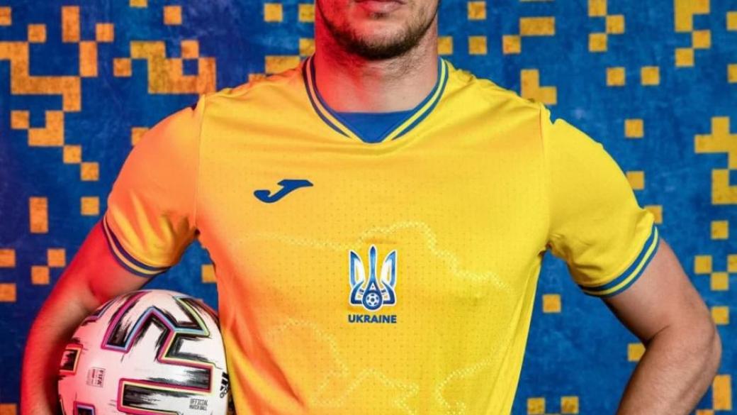 На форме футболистов Украинской Национальной сборной разместились сине-желтые цвета, трезубец, надписи «Слава Украине» — «Героям Слава», а также карта Украины с Крымом, Луганском и Донецком.
