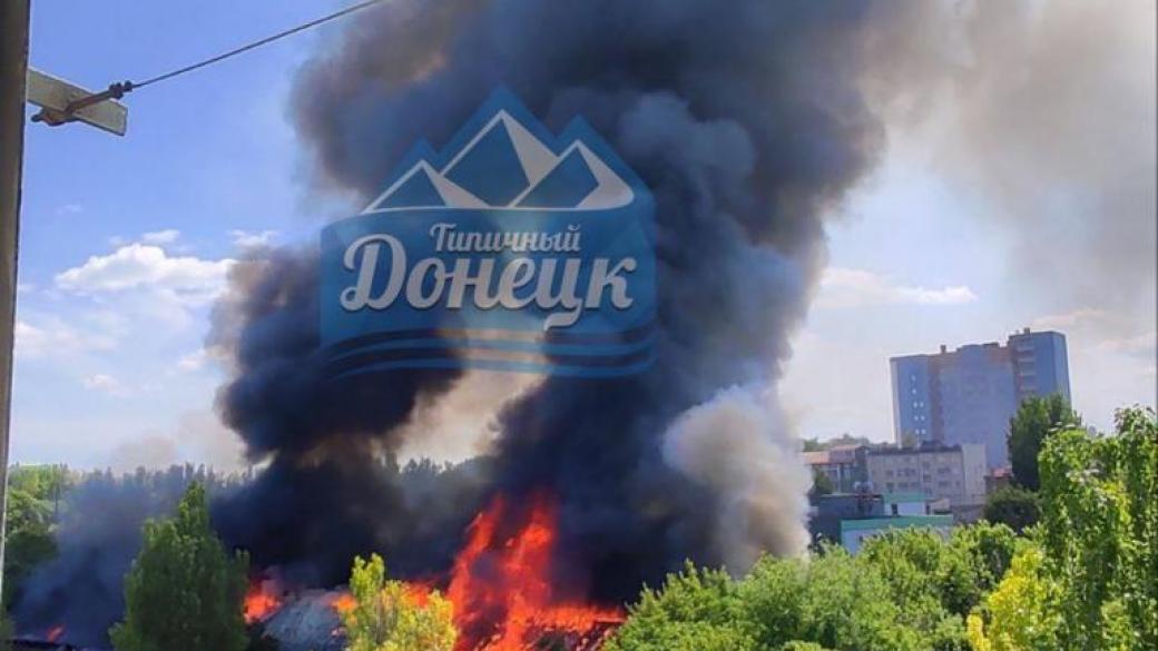 В результате попаданий снарядов в Ленинском районе неподконтрольного Украине Донецка горят склады со стройматериалами. Об этом сообщают подконтрольные ОРДО паблики.