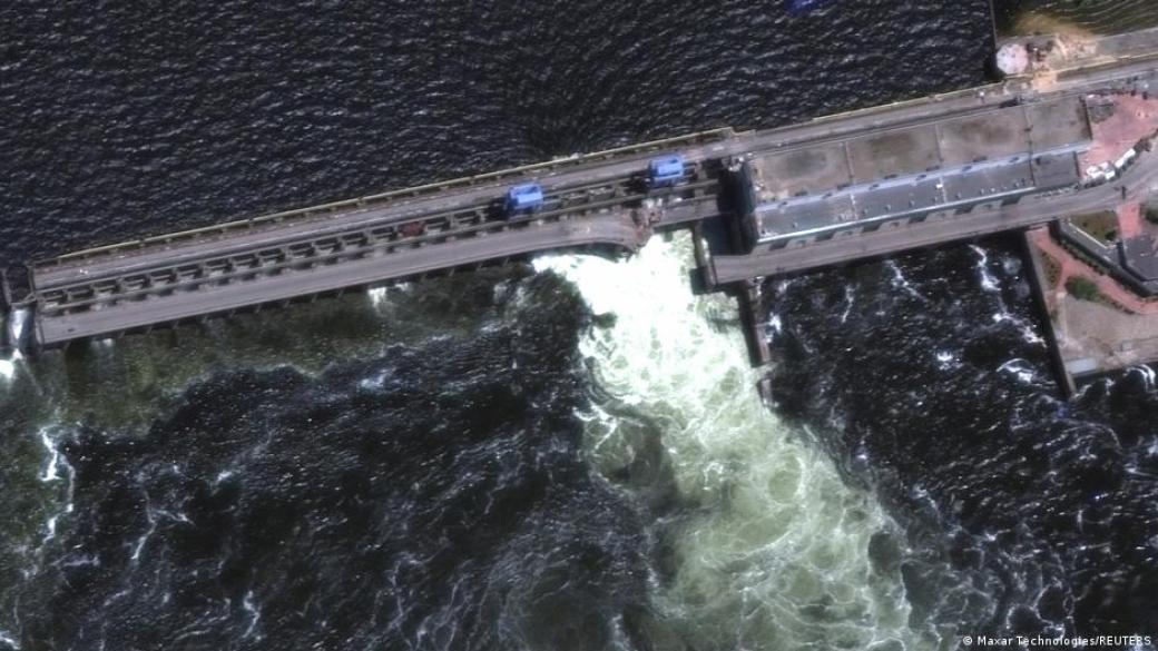 Опубликованы спутниковые фото разрушенной дамбы Каховской ГЭС.