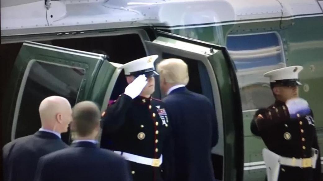 Председатель Всеукраинской общественной организации «Украина в НАТО», член Атлантического совета Украины Юрий Романюк сообщает: «Трамп из аэропорта Гамбурга осуществил перелет в свою временную резиденцию на двух одинаковых президентских бортах № 1 геликоптеров, одного — сопровождения, и еще трех военно-транспортных геликоптеров Вооруженных Сил США «Чинуки» со спецназом на борту, около 90−100 бойцов в каждом — на случай вынужденной посадки в неустановленном месте или обстрела с земли ПЗРК типа «Стингер» или «Стрела».